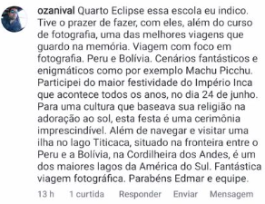 Já facilitei a fotografia para mais de 3 mil alunos em Brasília através de cursos de iniciação básica, avançados, oficinas criativas, safaris e expedições fotográficas nacionais e internacionais. Comigo é fácil realizar seu sonho de ser um bom fotógrafo e se apaixonar pela fotografia.